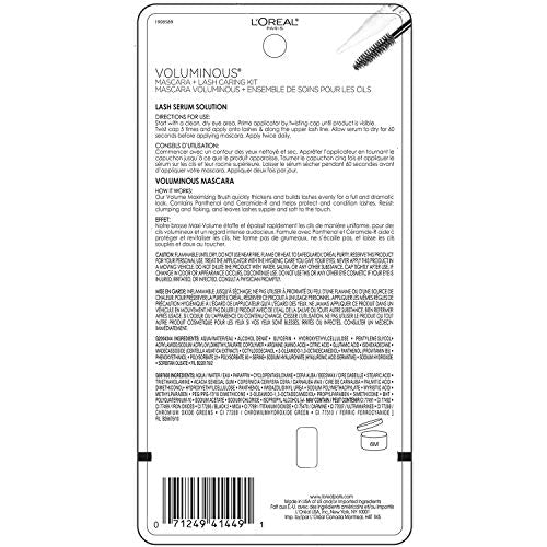 Details: L’Oral Paris Voluminous Original Volume Building Mascara is uniquely formulated to resist clumping, keep lashes soft, and build lashes up to 5x their natural thickness. Volume Maximizing Brush quickly thickens and builds lashes evenly for a full and bold look. Contains Panthenol and Ceramide-R and helps protect and condition lashes. Resists clumping and flaking, and leaves lashes supple and soft to the touch. Packaging may vary. What you receive may not be what is reflected on site. • Bold, volume building mascara • Up to 5x fuller lashes • Separates and builds every lash • Clump-free and Smudge-resistant mascara Place brush at base of lashes and gently sweep up to tip. Removes easily with soap and water. To safeguard L'Oreal purity, reserve this product for your personal use. Treat the applicator with the hygienic care you give your eyes. Never apply this product in a moving vehicle. Do not dilute mascara with water, saliva, or any other substance. Cap tightly after use. If change in odor or appearance occurs, discontinue use. Do not use this or any other eye cosmetic if your eye is injured, irritated, or infected. Consult a physician promptly.
